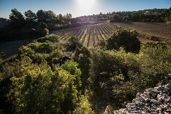 Elles sont réparties en trois ilots : un ilot plutôt dans la plaine, avec un sol profond, argilo-calcaire et de marne noir ; un ilot sur la Combe de Gasparets, plus en coteaux, des vignes isolées mais entourées par la garrigue, le thym, le romarin et des Pins. Et le troisième, situé sur la combe du Vialla, la zone la plus haute en altitude avec la présence de roches.
